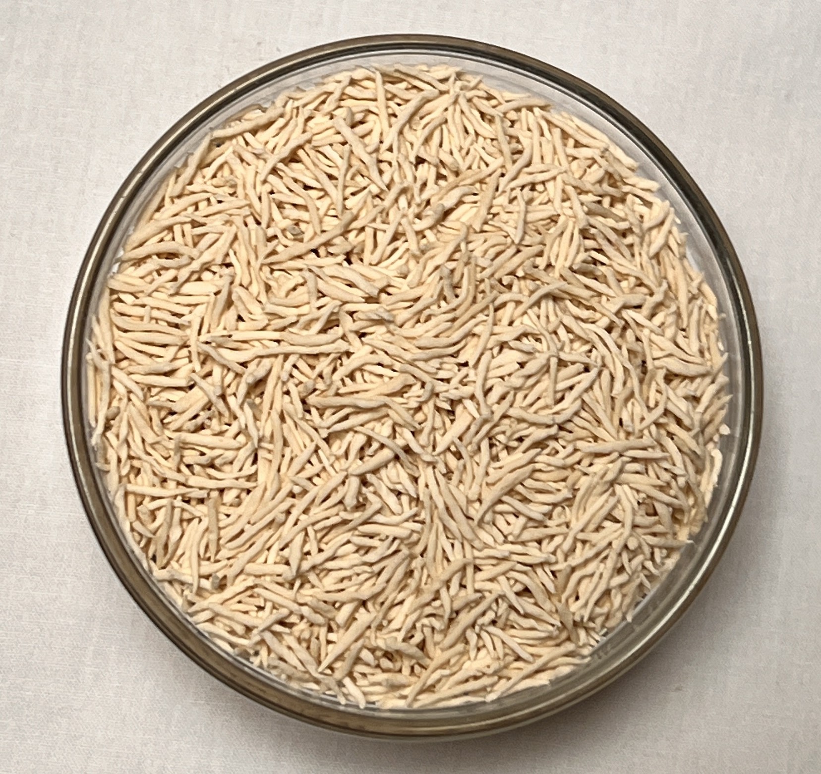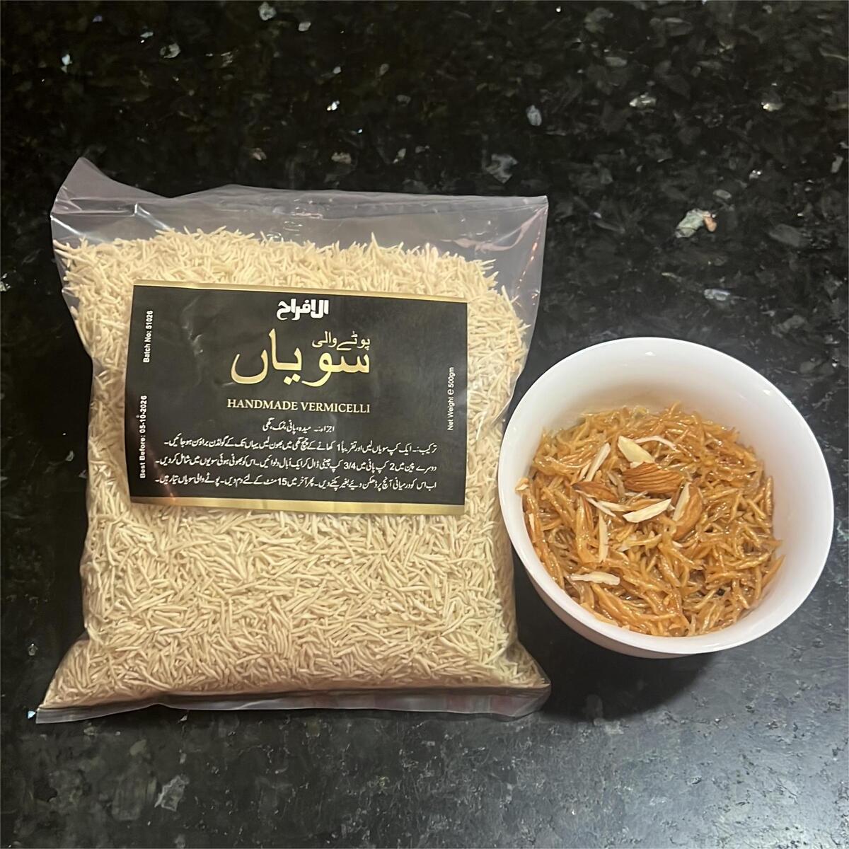 Take one cup of potey wali sawayyan(vermicelli) and roast it in about one tablespoon of ghee until it turns golden brown. In another pan, add two cups of water and three-fourths cup of sugar, and bring it to a boil. Add this syrup to the roasted vermicelli. Now, cook it on medium heat without covering it. In the end, let it simmer for fifteen minutes. The sweet vermicelli (Potey Wali Suwayyan) is ready.
