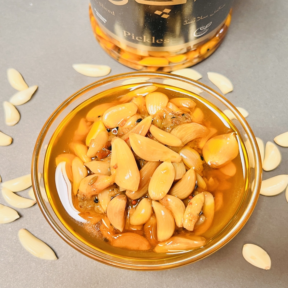 Garlic pickle has a bold, pungent taste with a spicy kick, and is believed to offer health benefits like improved digestion, immunity and has health benefits for heart patients. It’s commonly served with parathas, rice, or dal as a tangy, aromatic side.